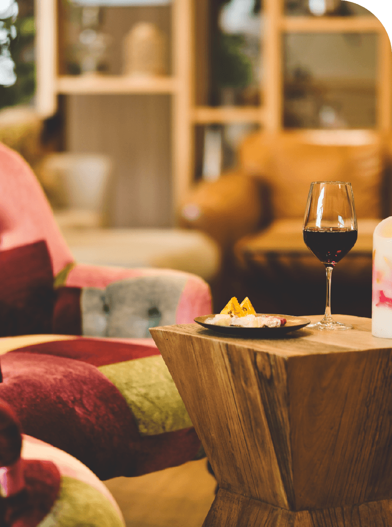 シアターラウンジにある大きいソファ、晴れた日にあるテラスのハンモック、オリジナルグッズが並ぶショップなどKIKI知床にある空間の数々から、あなただけの居心地のよい場所を見つけられるかも。