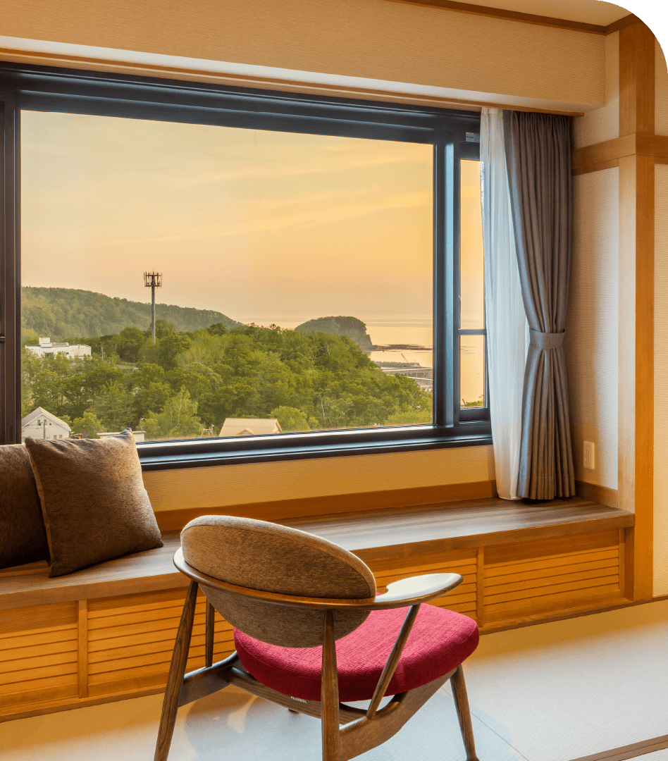 オホーツク海の夕陽を独占できる和洋室や、お子さまとでも安心して滞在できる和室など、多彩な部屋タイプをご用意しております。